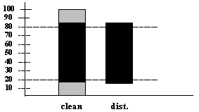 Un suono distorto, compresso dai circuiti, ha invece una dinamica più limitata, supponiamo da 20 a 80: suonando leggeri, avrò un volume minimo a 20, suonando forte arriverò al massimo a 80.