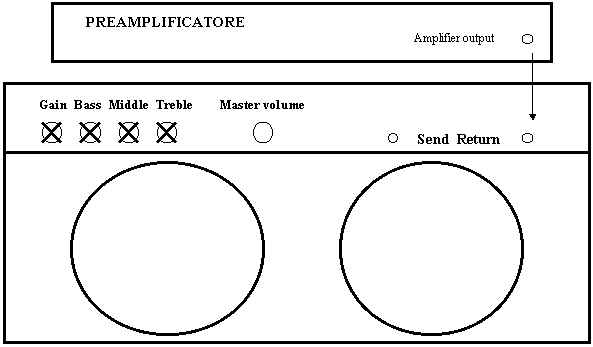 E' possibile collegare il preamplificatore ad un amplificatore o ad una testata, utilizzando il send-return di questi ultimi. Con questo sistema si utilizza quindi il pre separato, che può essere scelto tra marche e modelli diversi, e il finale dell'amplificatore (o testata).