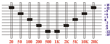 Veniamo quindi ad analizzare l'utilizzo degli equalizzatori grafici. Questi sono dotati di controlli a cursore che operano su di una specifica frequenza decisa dalla ditta costruttrice.