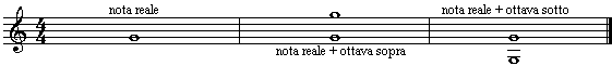 Nella figura sottostante potete vedere sul pentagramma il lavoro svolto dall'octaver. E' utile piazzarlo in catena subito dopo il Wha-Wha e prima degli altri effetti.