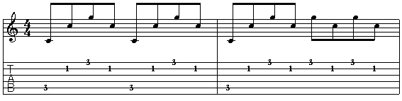 La parte di chitarra suona ad ottavi (trascritta nel primo rigo abbinato all'intavolatura) su di un tempo di metronomo di Quarto=134. Devono essere due i delay che lavoreranno con un feedback a 0, ognuno dei quali genera una sola ripetizione.