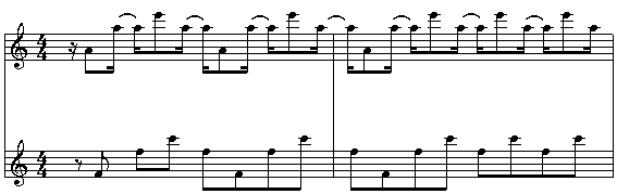 Come primo esempio, analizziamo un paio di battute del brano Ballerina 12/24 di Steve Vai, tratto dall'album Passion & Warfare del 1990. Il suono è stato programmato su di un Heventide H3000 in modo da processare il suono pulito