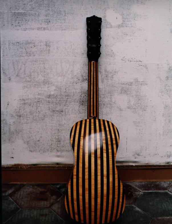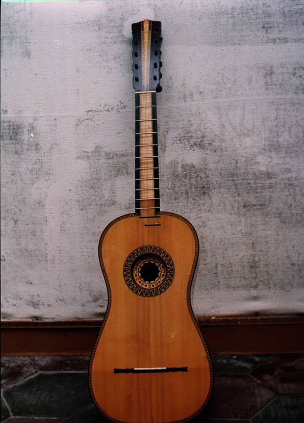 Il fondo è bombato e anch'esso costituito di doghe come le chitarre antiche.