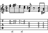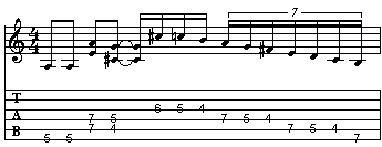Ecco il primo esercizio, che vale come esempio per tutti gli altri. Dopo l'esecuzione del riff trovate, di volta in volta, una frase che occupa la parte rimanente della battuta. La difficoltà della frase può variare a seconda dei casi. L'aiuto migliore rimane comunque l'ascolto di ogni singolo esempio e l'analisi del fraseggio stesso. Fate attenzione all'esecuzione ritmica di ogni singola nota, osservando soprattutto la scrittura musicale. Infine, è consigliabile la memorizzazione delle frasi.
