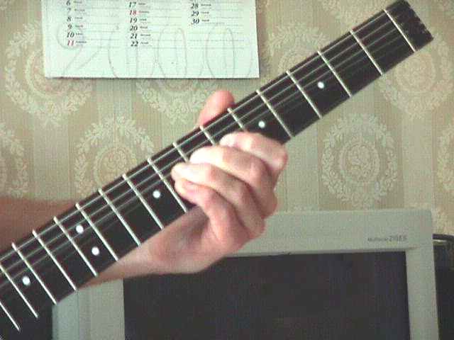 Osservate un particolare molto importante. Seppure fin'ora si era parlato di "tirare con il dito...", in effetti il movimento deve essere eseguito dal polso, che è molto più potente nel spingere che non il dito stesso: quest'ultimo deve ovviamenete fare forza sulla corda, ma è il polso che in maniera tale da spingere sulle dita. Per convenzione si usa comunque dire "tirare" (o spingere" con il dito...
