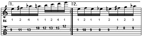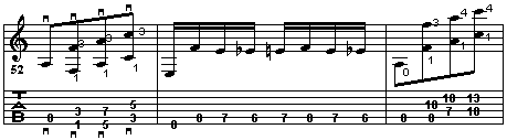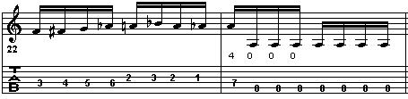 A battuta 100 ci si fermerà sulla nota A della prima corda al 17° tasto, punto di arrivo della scala cromatica che era iniziata sulla nota E, sesta corda a vuoto.