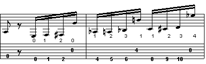 Dalla battuta 23 entrano in gioco anche le corde a vuoto, le quali creeranno un po' di scompiglio nella successione della diteggiatura.