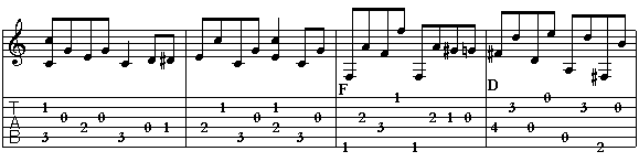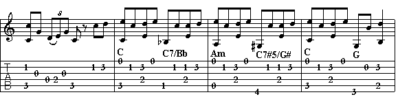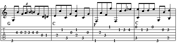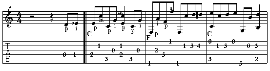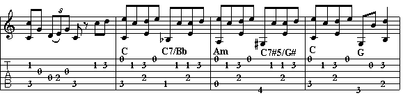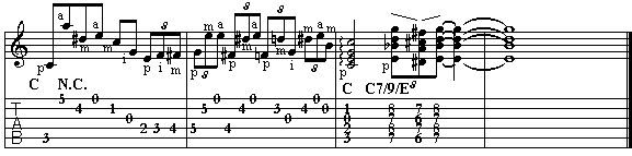 finale prevede l'uso della seconda e terza posizione (prime due battute dell'ultima riga). L'ultimo accordo (il C7/9/E) viene suonato