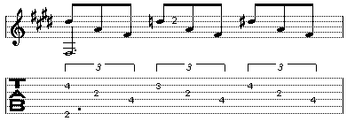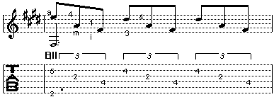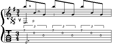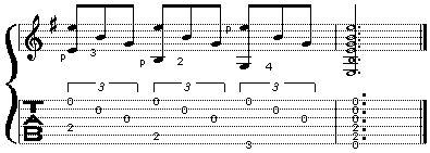 troviamo un singolo accordo di Em, suonato dal dito pollice che scivola su tutte le corde, dalla sesta alla prima.