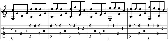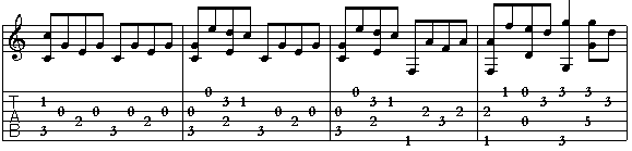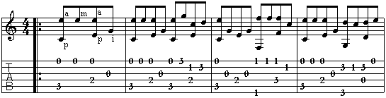 il sistema standard nella loro diteggiatura, con il pollice che suona le corde basse e indice, medio e anulare quelle alte.