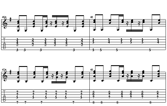 posizione, alla quale viene fatto seguire un arpeggio sulla accordo di G maggiore.