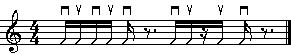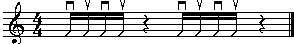 Uso delle pause in battere su secondo e quarto movimento. Attenzione, come al solito, a fermare la vibrazione delle corde al momento giusto, rilasciando la pressione delle dita sulle corde senza però staccarle dalle corde stesse, in modo tale da interrompere il suono per il valore di tempo indicato (in questo caso, pausa da 1/4).