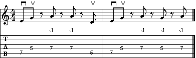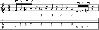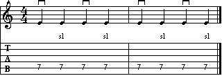 Grazie a questa tecnica sarà quindi possibile variare ritmicamente le nostre esecuzioni a note singole durante i riff, ma anche durante i soli. Vediamo ora qualche esempio che serva a sviluppare la tecnica dello slap, ricordando che nella partitura, il simbolo dello slap è indicato dalle lettere sl