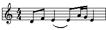 essere legate le note. Nel primo caso, la nota E del valore di un quarto viene legata al successivo