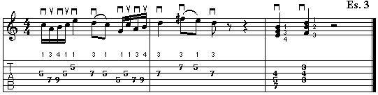 La parte, da suonare in seconda posizione, prevede un hammer-on tra il A e il B sull'ultimo movimento della prima battuta e una hammer-on tra il