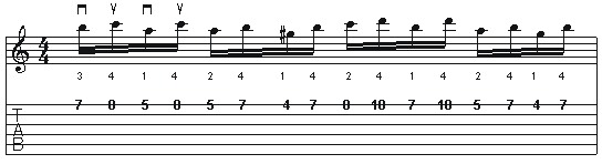 della mano sinistra al 5° tasto: in questo modo lavoriamo in quinta posizione. Esercizio 2 ![]() Quando avete assimilato perfettamente l'esercizio 1, potete passare al secondo. Il pattern di quattro note viene suonato una sola volta, seguito dagli altri all'interno di una sola battuta. In questo caso la tecnica di esecuzione è la stessa, ma bisogna cambiare corda alla fine di ogni sequenza (che dura appunto una battuta), scalando di una corda per volta, dalla prima alla sesta, per poi ridiscendere alla prima. Questa è una caratteristica di lavoro che verrà usata spesso nell'esecuzione dei vari esercizi. Esercizio 3 ![]() Cambia la successione delle note, anche se il concetto è lo stesso visto nell'esercizio 1. Attenzione alla diteggiatura, che ovviamente è cambiata. Per il resto valgono i consigli dati precedentemente. Esercizio 4 ![]() Sviluppate l'esercizio 3 su tutte le corde. Da aquesto punto tutti gli esercizi a seguire imposteranno varie sequenze di esecuzione, verranno scritti su di una sola corda, ma ricordate di eseguirli su tutte le corde e sempre a tempo. L'uso del metronomo deve essere parte costante del lavoro, e vi permetterà di assimilare sempre più confidenza con il timing. Buon lavoro. Esercizio 5 ![]() Esercizio 6 ![]() Esercizio 7 ![]() |
