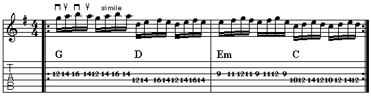 In questo pattern, nella tonalità di G, vengono ad essere ripetute le prime tre note di una sequenza
