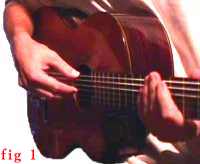 a formare un angolo a 90°. Osservando la figura 1, appoggiate il pollice nella parte superiore sesta corda, mentre l'indice, il medio