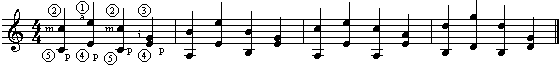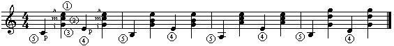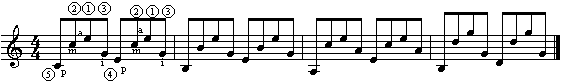 Vedremo ora di lavorare con un serie di esercizi basati sulla struttura di quattro accordi, uno per battuta e sempre gli stessi in tutta la serie di esercizi.