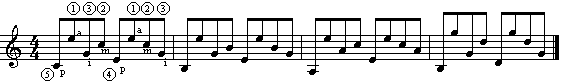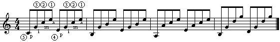 diverse situazioni tipiche di lavoro delle dita della mano destra, unendo il tutto ad una forma di cantabilità dell'esercizio, in modo da non risultare
