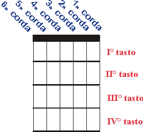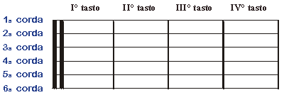 Le righe verticali indicano i tasti, mentre la doppia riga (verticale) il capotasto. I