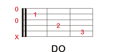 i numeri indicheranno quale dito preme sulla relativa corda. Nel grafico che vedete sotto, lo stesso accordo di DO maggiore visto sopra in orizzontale viene proposto