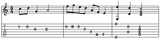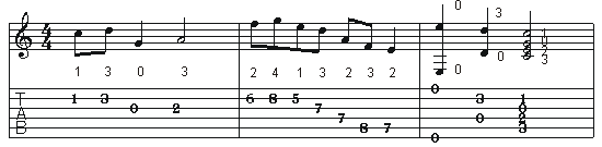tasto sulla seconda corda (nota DO) seguita sull'ottavo seguente dalla nota RE, terzo
