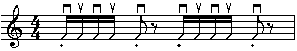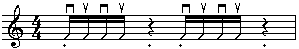 Ex #6 - Più complesso è l'uso delle pause di ottavo all'interno di una ritmica di sedicesimi.