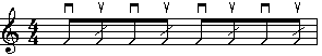 Ex #1 - Iniziamo l'analisi dello stoppato su note da quarto. Per indicare