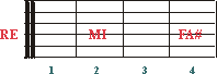 Tenendo premuto il dito medio, pigiamo il mignolo al 4° tasto dalla 4a corda, e suoniamo così la nota FA#. E' probabile che alcuni di voi avranno difficoltà in quanto il dito mignolo è il più debole della mano, e quindi farà più fatica rispetto alle altre dita. L'allenamento contribuirà a risolvere questo problema.