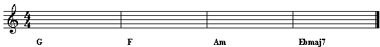 L'accordo di Am può risultare ambiguo, legando sia con quello di F immediatamente precedente, ma anche con l'accordo di G. Durante i fraseggi esposti, come vedrete, toccheremo entrambe le tonalità.