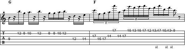 Fate attenzione all'uso della pennata, così come indicata, che risulta complicata in quanto contiene una serie di string-skipping . Infine, ricordo che la base può essere ovviamente utilizzata per le vostre improvvisazioni.