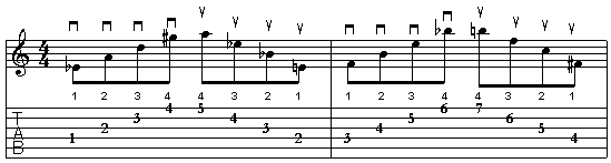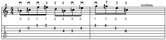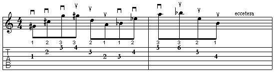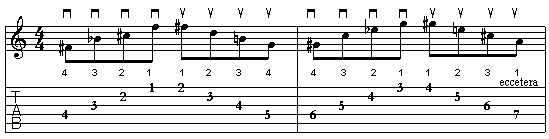 alla fluidità della pennata sulle corde. Le dita della sinistra vengono abbinate secondo questo schema: