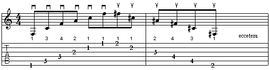 Negli esercizi a seguire vengono affrontate varie diteggiature paragonabili agli accordi.