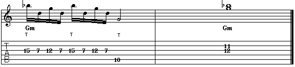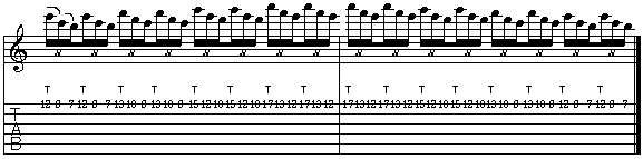 di esecuzione. In pratica, ogni gruppo di tre note è formato da una di tapping seguita dalle altre in pull-off.