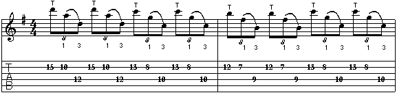 dal tapping del dito indice, mentre la successiva nota E dal tapping del dito anulare. Quest'ultimo crea un pull-off