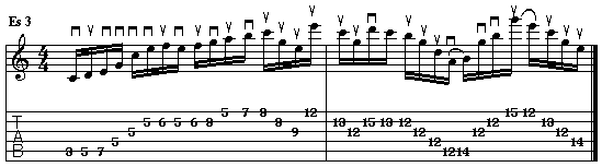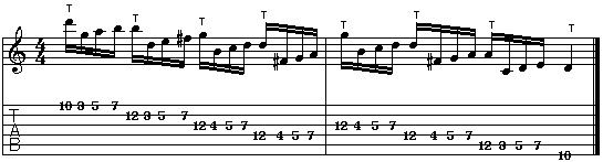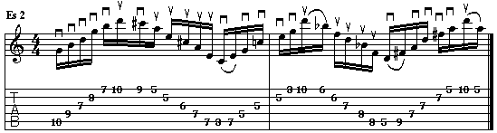 legate fra loro con una serie di hammer-on e pull-off. In pratica, si suona la prima delle due note,
