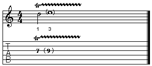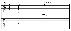 Utilizzando invece la leva del vibrato troviamo il termine WB (Whammy Bar, leva del vibrato, appunto).