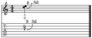 appunto, l'uso del bending. Nell'esempio, il 1° dito rimane fisso sulla seconda corda (nota E) mentre il