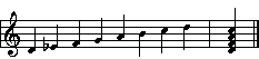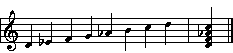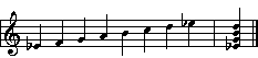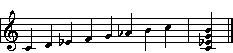 ne risulta come nome dorico 2b 5b. Questa scala è infatti paragonabile al modo dorico nella tonalità maggiore che porta la stessa tonica, al quale viene abbassato di 1 semitono il secondo grado (2b, appunto) e il quinto grado (5b).
