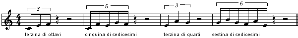 Solitamente questi gruppi irregolari di note sono segnalati da un numero sopra le note
