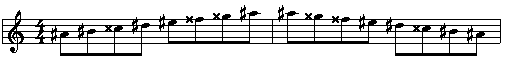 DA FA## arriviamo un tono dopo a SOL## (suono reale: LA naturale), per concludere 1 semitono sopra alla tonica LA#. Osservate la scala in entrambi i sensi (ascendente e discendente), ricordando che il simbolo x